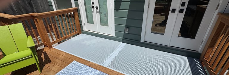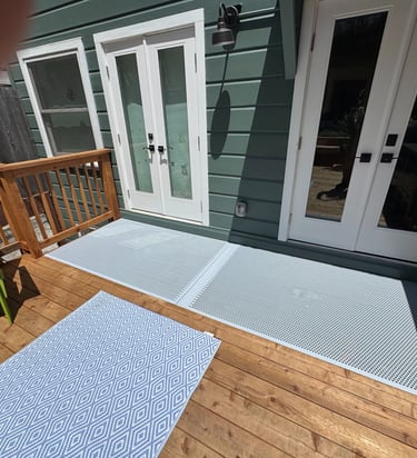 We put in this metal deck for a residence in San Francisco. The top is the start and the bottom is the completed deck, looking down.
